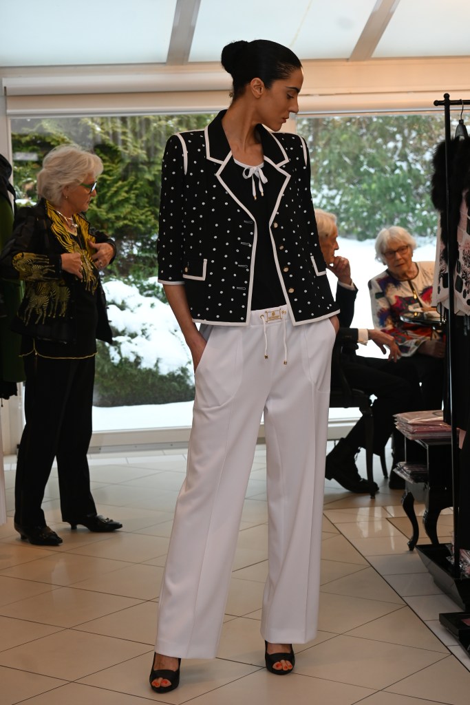 Muss man die Designs von Liz Malraux eigentlich einheitlich als ganzen Look tragen? Selbstverständlich nicht. Die Looks bietet die Designerin als Vorschlag an. Da es Liz Malraux aber in allen Farben und Formen gibt, kann man diese im Zwiebellook, Ton in Ton oder im Color-Blocking als Baukasten tragen und kaufen wie ihre Kundinnen gestern perfekt gezeigt haben.