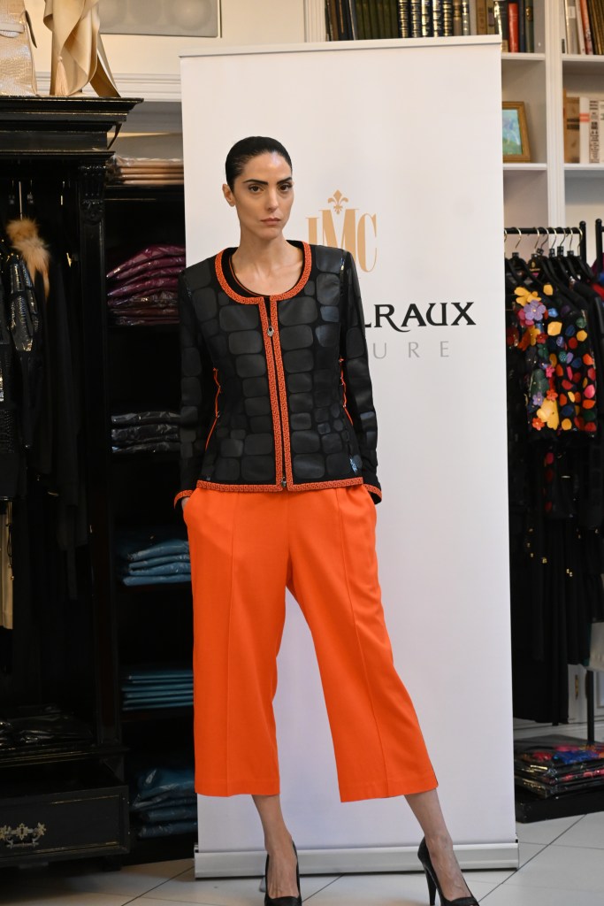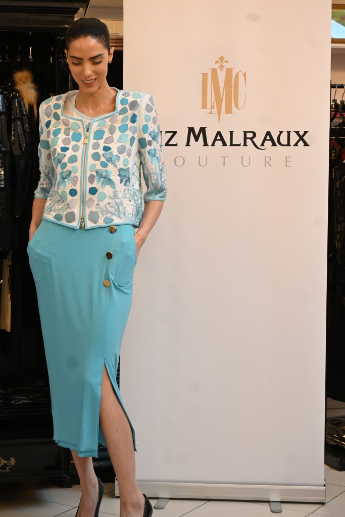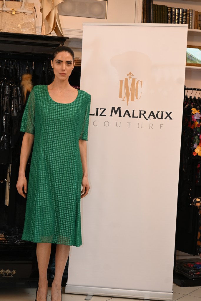 Die Veranstalterin selbst zeigte sich für ihre Kundschaft stets voll einsatzbereit sowohl an der Tür zur Begrüßung, in ihrem Büro zum Kaufabschluss und zum Verpacken, an der Seite ihres langjährigen Models, um bestimmte Aspekte wie die Liebe zum Detail und die Weiterverwertung kleinster Stoffreste aus Italien und Frankreich hervorzuheben und bei ihrer Kundschaft, um Styles zu zeigen, abzustecken, aber auch direkt ihr unverkennbares künstlerisches Handwerk unter Beweis zu stellen. So setzte sie sich in Mitten ihrer Kundinnen hin und zeichnete neue, auf die Wünsche der Kunden abgestimmte Designs: Die Kunden wollen einen Morgenmantel? Sie bekommen ihn. Ein Unikat ihrer Kollektion ist nicht mehr vorrätig? Sie näht das bestehende Teil um, sodass es passt. Herrenmode ist gewünscht, so etwa Hemden, die sich ohne Krawatte tragen lassen? Sie setzt das Design um. Bei allem trägt sie immer ihr charmantes Lächeln auf dem Gesicht Liz Malraux ist keine Modeschöpferin, sie ist die gute Fee der Modewelt. So zeigte sie sich nachhaltig und innovativ.